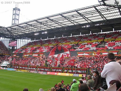 Machen wir es diesmal kurz. Der 1. FC Köln hat sich mit einer engagierten Leistung von erneut 40.000 Zuschauern im RheinEnergiestadion verabschiedet. In einem über weite Strecken sehr unterhaltsamen Spiel gelang den Daum-Schützlingen gegen die abstiegsbedrohten Gäste aus Offenbach ein letztlich gerechtes 2:2-Unentschieden. Dabei bewiesen die Kölner Moral, konnten sie doch trotz einer 65-minütigen Unterzahl nach dem für Christoph Daum „völlig überzogenen“ Platzverweis gegen Fabrice Ehret den Pausenrückstand (Tor durch den Kickers-Stürmer Türker) drehen. Helmes und Novakovic trafen in der 63. und 65. Minute zur zwischenzeitlichen 2:1-Führung, Offenbachs Joker Agritis glich in der 69. Minute erneut aus.