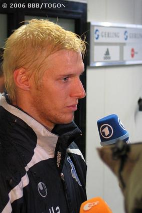 Wir haben eigentlich ordentlich, diszipliniert, kompakt stehend begonnen und haben dann uns dann selbst auf die Verliererstraße gebracht, wobei ich sagen muss: Okay, beim ersten Tor sieht der Stefan sicherlich, wenn der Ball mitten aufs Tor geht, nicht gut aus. Aber ein Torhüter muss immer ein bisschen vor dem Tor stehen. Da muss ich den Schützen eben blocken. Er hat in einer Situation danach gezeigt, als auch eine abgerutschte Flanke immer länger wurde, dass er hellwach war und mit einem Schritt rückwärts und Übergreifen den Ball fast aus dem Winkel rausgehauen hat. Das zeigt mir auch, dass er nach so einem Tor weiter stabil bleibt. Das macht mich zuversichtlich.