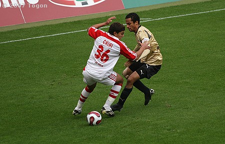Spiel ohne Ball. Chihi lässt die Kugel liegen.