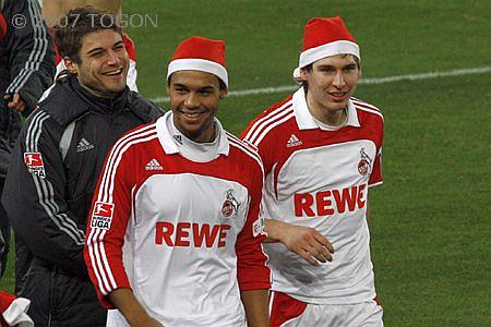 Mohamad, Matip und Helmes in weihnachtlicher Feierlaune.