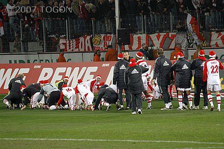 Eine Punktlandung gelang dem 1. FC Köln im letzten Vorrundenspiel. Das Tor von Youssef Mohamad sechs Minuten vor Schluss bescherte dem rheinischen Traditionsverein nicht nur den 2:1-Erfolg gegen den 1. FC Kaiserslautern, sondern auch noch den Sprung von Platz 6 auf Rang 3. Beinahe in letzter Minute kletterten die Geißböcke auf den Aufstiegsrang, der wochenlang unerreichbar schien. Entsprechend euphorisch feierte die Truppe von Startrainer Christoph Daum das kaum noch für möglich gehaltene Happyend. Dass damit obendrein der erste Sieg gegen den Angstgegner aus der Pfalz nach unglaublichen 18 Jahren geschafft wurde, ging im Trubel ein bisschen unter.