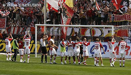 Christoph Daum war nach dem Spiel hochzufrieden. „Ich kann ein durchweg positives Fazit ziehen“, meinte der FC-Trainer. „Die Stimmung war spitze, die Leistung und das Ergebnis. Wir haben endlich auch gegen eine der oberen Mannschaften gewonnen. Das war der Durchbruch oder der Aufbruch. Es war eine Extremsituation. Ich muss besonders auch Thomas Broich und Milivoje Novakovic loben, die ihre Gesundheit zur Verfügung gestellt haben. Sie mussten mit Schmerzen spielen. Das war ein Tanz auf der Rasierklinge. Wir waren hochmotiviert und sind sehr aggressiv in die Zweikämpfe gegangen. Und Fußall spielen können wir auch. Wir haben uns jetzt eine gute Ausgangsposition für die letzten Spiele verschafft und müssen jetzt unsere Position festigen. Das war heute eine tolle Mannschaftsleistung, heute hat das Team gewonnen, das von einer Vision beseelt ist. Das war das wichtigste Spiel dieses Jahres, in dem wir nichts dem Zufall überlassen wollten. Die Mannschaft hat klar gezeigt, was sie will: den Aufstieg. Mein Dank geht auch an das Publikum, das auch nach dem Ausgleich wie eine Eins hinter der Mannschaft stand.“