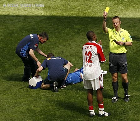 ... und sprintet übers ganze Feld zum Mannschaftsarzt.