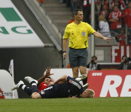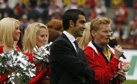 Vor dem Spiel dankt FC-Kapitän Ümit Özat den Fans für die vielen Genesungswünsche nach seinem Zusammenbruch in Karlsruhe.