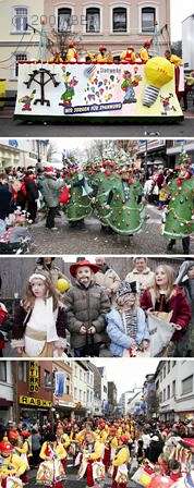 Rekordverdächtig: Mehr als 120.000 Menschen säumten am Karnevalssonntag die Strecke des "Närrischen Elias" in der Innenstadt und feierten ausgelassen den Höhepunkt des Brühler Karnevals. Ob groß oder klein, alt oder jung: Um 13.30 Uhr starteten über 2.100 Teilnehmer im Zug der Rekorde mit rund 70 Abteilungen darunter jede Menge Fußgruppen, Musikzüge, Motivwagen, Kutschen und Planwagen durch, um das Brühler Narrenvolk in Stimmung zu bringen.