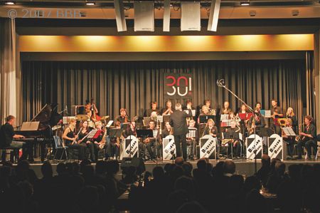 Die Bigband der Kunst- und Musikschule feierte kürzlich vor ausverkauftem Haus in der Aula des Max Ernst Gymnasiums ihren 30. Geburtstag. Ob die Nachwuchs-Bigband oder die „Allstar-Band“: Dem Publikum wurde ein kurzweiliges und höchst unterhaltsames Musikprogramm geboten. Leiter Elmar Frey erinnerte mit großem Dank an den Urvater des Brühler Jazzlebens, Lee Chegwidden und dessen Engagement für die Jugend in Brühl.