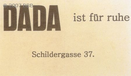 Nachdem die Ausstellung „Dada-Vorfrühling” im Lichthof des Brauhauses Winter in der Schildergasse 37 polizeilich geschlossen worden war, warben die Kölner Dadaisten mit einem Plakat für die Wiedereröffnung. Zu diesem Anlass wurden dieser und ein weiterer Handzettel gedruckt (siehe die Oktober-Ausgabe); beide sind erst vor kurzem bekannt geworden.