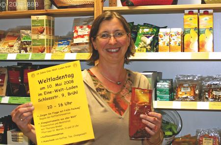 (tg) In diesem Jahr feiern der gemeinnützige Verein „Unterwegs – Ökumenische Initiative für eine gerechtere Welt“ und der vom Verein betriebene Eine-Welt-Laden in Brühl ihr 15-jähriges Bestehen mit einem vielfältigen Veranstaltungsprogramm. Anfang Mai ging es los mit dem Weltladentag. Viele weitere Aktionen folgen. Wir haben die Geschäftsführerin des Eine-Welt-Ladens, Heike Kragl-Besse, zum Gespräch getroffen.
