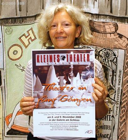 Unter der Regie von Hannelore Zilken (Bild) spielen viele Ensemblemitglieder des KTB sowohl auf der Bühne als auch im Servicebereich mit. Die Idee zu dieser spannenden Vermischung aus Theater und Gastronomie stammt bereits aus dem Frühjahr. Für die Küche ist KTB-Mitglied Andre Bach verantwortlich. Er kochte bereits im Fernsehen an der Seite von Horst Lichter, beim „perfekten Dinner“ bei Vox und der „Küchenschlacht unter Volldampf“.
