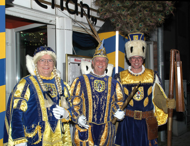 „Unsere Frauen”, lacht das Dreigestirn unisono. „Ohne die Frauen wäre ein Dreigestirn nichts. Ohne sie kriegt man es nicht hin.”