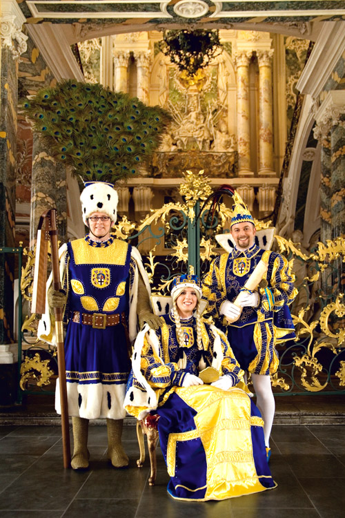 Der Anfang war gemacht. Seitdem ist das Dreigestirn in dieser recht kurzen Session beinahe im Dauereinsatz. 150 Auftritte stehen auf dem Programm, das Prinzenführer Karl-Heinz Becker mit der Gelassenheit und Souveränität von 23 Jahren Erfahrung managt. Nicht nur der Prinzenführer steht hinter dem Trifolium, sondern ein riesengroßes Team. Gut die Hälfte der rund 70 Mitglieder zählenden Zuckerknöllche ist aktiv dabei, wenn das Dreigestirn Termine wahrnimmt.