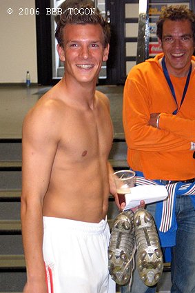 Das Spiel war lange abgepfiffen, Poldi seine ganz persönliche Ehrenrunde allein durchs Stadion gelaufen und die meisten Medienvertreter waren abgezogen, da öffnete sich in den Katakomben des RheinEnergieStadions unvermittelt eine Tür und ein halbnackter Denis Epstein tauchte auf. In den Händen seine Fußballschuhe und einen Plastikbecher mit einem Gebräu aus Cola und Bier. Er kam gerade von der Dopingprobe, die bei ihm offensichtlich etwas länger gedauert und Spuren hinterlassen hatte. Epstein mimte den Betrunkenen, der torkelnden Schritts versucht, die Tür zur FC-Kabine zu finden. Die Freude über den versöhnlichen Saisonabschluss eines ansonsten verkorksten Spieljahres ließ sich der 19-jährige gebürtige Zollstocker nicht nehmen. Für ihn persönlich war es ein gutes erstes Profijahr.