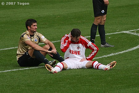 Gästetrainer Holger Fach blickte ob dieser Ausführungen immer wieder verwundert in die Runde, so, als traue er seinen Ohren nicht. Sein kurzer Kommentar lautete: „Wir hätten das Spiel für uns entscheiden müssen. Es sagt doch alles über das Spiel, wenn der Sieger nach dem Spiel von den eigenen Zuschauern ausgepfiffen wird.“ Womit er recht hatte. Paderborn vergab eine Reihe von Großchancen und hatte zudem bei Lattenknallern zweimal Pech. Die Kölner hatten Milivoje Novakovic, der mit seinen Saisontreffern acht und neun das Schlimmste verhinderte.