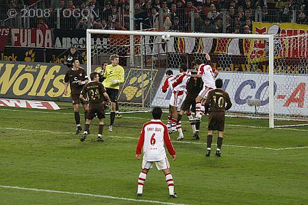 Nach einer desaströsen ersten Spielhälfte, in der die Kölner von den Gästen aus St. Pauli streckenweise vorgeführt wurden und verdient durch einen Treffer von Meggle kurz vor dem Pausenpfiff in Rückstand gerieten, setzte Christoph Daum kurz nach dem Wechsel ein Zeichen. Der FC-Trainer kapitulierte angesichts der erbärmlichen spielerischen Darbietung seiner Truppe und packte die Brechstange aus. Schon nach 51 Minuten beorderte er seinen Abwehrchef Kevin McKenna in die Sturmspitze und ließ fortan ausschließlich mit langen, zumeist planlos nach vorne gedroschenen Bällen operieren. Der Erfolg dieser Verzweiflungsmaßnahme gab ihm schließlich sogar noch recht. Ein paar Chancen sprangen tatsächlich noch heraus. Und kurz vor Schluss erzielte Joker Adil Chihi doch noch den Ausgleich, wenn auch aus einer Abseitsposition heraus.