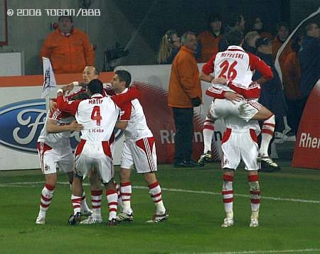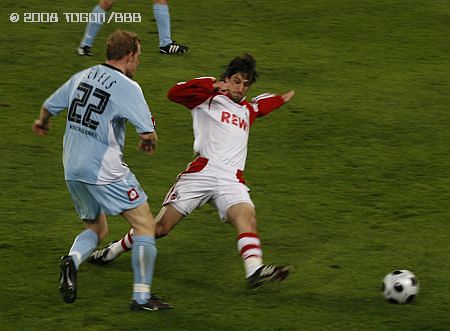 Rückschlag für den 1. FC Köln. Nach einer über weite Strecken enttäuschenden Leistung fielen die Domstädter durch das schmeichelhafte 1:1-Unentschieden gegen den niederrheinischen Rivalen aus Mönchengladbach zurück auf Platz 4 und damit raus aus den Aufstiegsrängen. Dass gegen den überlegenen Tabellenführer überhaupt wenigstens ein Punkt heraussprang, ist einer Last-Minute-Fehlentscheidung des schwachen Schiedsrichters Kinhöfer zu verdanken, der ein Foul des Borussen-Verteidigers Roel Brouwers am durchgebrochenen Milivoje Novakovic in den Strafraum verlegte und auf Elfmeter entschied. Den verwandelte Patrick Helmes sicher und beruhigte auch die erhitzen Gemüter unter den 50.000 Zuschauern im ausverkauften RheinEnergieStadion.