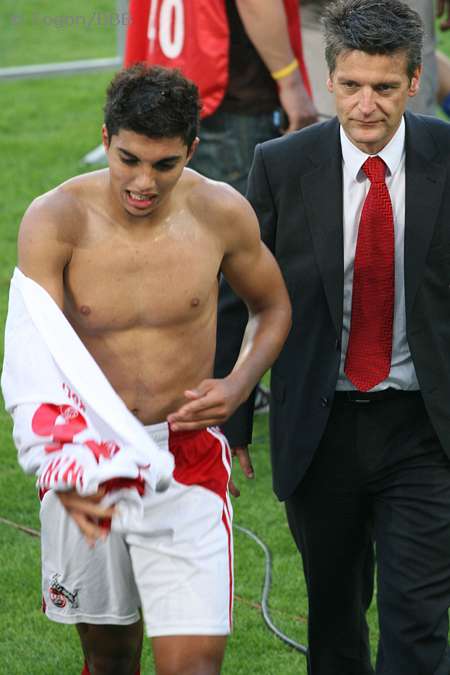 In einem fulminanten Schlussspurt sicherte der dreifache Torschütze Adil Chihi dem FC einen kaum noch für möglich gehaltenen Sieg. 4:3 hieß es am Ende für die Domstädter, die ihren ganzen Frust fahren ließen und selten einen Erfolg so überschwenglich auf dem Rasen und mit den Fans gefeiert haben. Entsprechend gelöst präsentierte sich Christoph Daum vor der Presse. „Wir müssen uns beim Publikum bedanken, das immer hinter uns gestanden hat“, begann er seine Ausführungen. „Wir verdanken den Erfolg dem Publikum. Die Mannschaft hat nie aufgesteckt und Moral gezeigt. Es war ein verrücktes Spiel mit hohem Unterhaltungswert und vielen Fehlern. Wir haben es glücklich gewonnen. Das kann ein Highlight für den weiteren Saisonverlauf sein. Wir müssen aber schon beim nächsten Spiel in München viel weniger Fehler machen und kompakter stehen. Nach dem Sieg können wir positiv in die Zukunft schauen. Es war ein Sieg der Moral und des Nie-Aufgebens. Wir wollen natürlich nicht oft in Rückstand geraten. Aber wenn es mal so kommt, können wir uns dieses Spiel in Erinnerung rufen.“