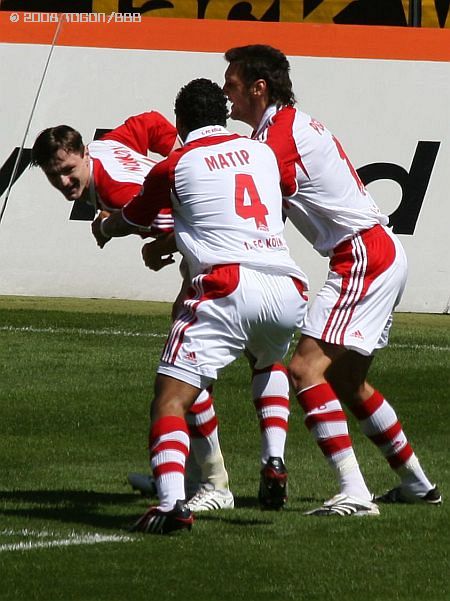 Novakovic kann nach seinem Führungstreffer nicht gehalten werden ...