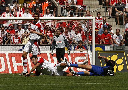Der 1. FC Köln hat den Aufstieg in die erste Fußball-Bundesliga perfekt gemacht. Nach einer Klassevorstellung besiegte der FC den Aufstiegskonkurrenten aus Mainz hochverdient mit 2:0. Die Gäste blieben weitgehend harmlos und hatten dem couragierten Spiel der Kölner kaum etwas entgegen zu setzen. Matchwinner war der erst in der Rückrunde gewaltig in Fahrt gekommene Libanese Roda Antar, der beide Treffer markierte und damit die 50.000 Zuschauer im ausverkauften RheinEnergieStadion in einen Freudentaumel stürzte. Nach Abpfiff des guten Schiedsrichters Michael Kempter stürmten den Fans den Innenraum und verwandelten das Stadion in die größte Partyzone Kölns.
