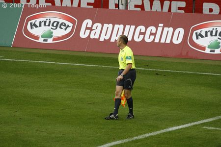 Kurioser Linienrichter, fast die gesamten 90 Minuten innerhalb des Spielfeldes.