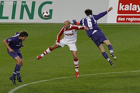 So unterhaltsam die Heimspiele des 1. FC Köln auch in dieser Saison sind, sie verlaufen zuletzt in schöner Regelmäßigkeit nach dem gleichen Strickmuster. Wie schon gegen Freiburg, Offenbach und Paderborn ging der FC früh in Führung. Doch statt den Gegner weiter unter Druck zu setzen, zogen sich die Domstädter weit in die eigene Hälfte zurück, überließen den Gästen die Initiative und bettelten förmlich um die Gegentore. Gegen das auswärtsschwächste Team des deutschen Profi-Fußballs vergeigten die Kölner sogar wieder einmal eine 2:0-Führung. Dennoch reichte es vor 34.000 Zuschauern zum dritten Heimsieg in Folge. Wie schon gegen Paderborn war der Sieg äußerst glücklich und vor allem der Treffsicherheit von Stürmer Milivoje Novakovic zu verdanken, der mit seinen Saisontreffern 10 und 11 die vagen Kölner Aufstiegshoffnungen am Leben erhält.