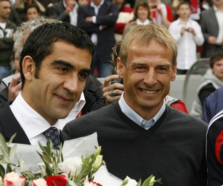 Von Bayern-Trainer Jürgen Klinsmann gibt’s Blumen und ein Trikot.