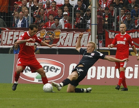 Vor dem Spiel dankt FC-Kapitän Ümit Özat den Fans für die vielen Genesungswünsche nach seinem Zusammenbruch in Karlsruhe.