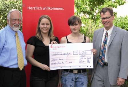Noch rechtzeitig vor der Feier konnte Wolfgang Eckert, Bezirksdirektor der Kreissparkasse Köln (KSK), die Schüler der Elisabeth-von-Thüringen Realschule bei der Finanzierung der Schulabschluss-Fete unterstützen. Stefanie Daniels hatte sich stellvertretend für ihre Mitschüler am 100pro-Schulabschluss-Gewinnspiel der KSK beteiligt und den zweiten Preis gewonnen. Eckert überreichte ihr in der Elisabeth-von-Thüringen Realschule den Gewinn, einen Zuschuss in Höhe von 750 Euro. Die KSK gratuliert allen Schülern zu ihrem Abschluss und wünscht ihnen alles Gute für ihren Start ins Berufsleben.
