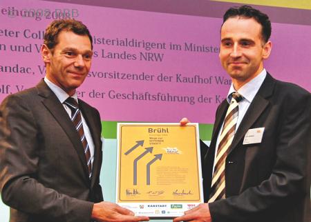 Bauminister Oliver Wittke hat 24 nordrhein-westfälische Städte und Gemeinden als Sieger im Landeswettbewerb „Ab in die Mitte!“ 2008 ausgezeichnet. Die erneute Auszeichnung bedeutet für die Stadt Brühl eine landesweite Würdigung der vielfältigen Stadtentwicklungsprojekte und Marketingmaßnahmen für die Brühler Innenstadt. „Wege zur offenen Stadt“ ist das landesweite Motto für 2008, das viele Möglichkeiten der Einbindung von unterschiedlichsten gesellschaftlichen Gruppen bietet. Zentraler Mittelpunkt werden hier Mobilität und Erreichbarkeit sein. Das diesjährige Brühler Motto lautet: „Generation.Brühl – Kurze Wege! Starke Stadt!“