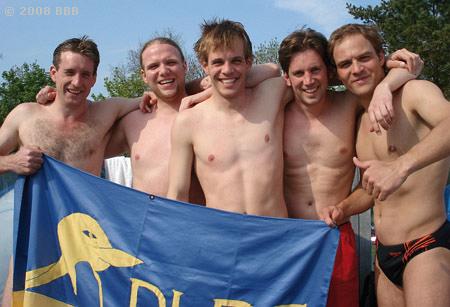 Am zweiten Tag waren die Leistungen der Mannschaften im Freibad von Weener gefragt. Die Brühler Jungsenioren in der Altersklasse 100 (Georg Picott, Michael Mühlbauer, Johannes Vierbuchen, Jens Hauber und Sebastian Wanders) gingen mit der Erwartung einer Platzierung unter den ersten Fünf an den Start. Während nach der Hindernisstaffel noch kleine Brötchen gebacken wurden, schwammen sich die Schlossstädter bei der Puppenstaffel auf Rang Zwei. Diesen Platz ließen sie sich auch nicht mehr bei der kombinierten Rettungsstaffel sowie bei der Gurtretterstaffel nehmen. Sie holten bei der Siegerehrung, die feierlich im Rahmen einer Abendveranstaltung abgehalten wurde, die Silbermedallie ab und wurden deutsche Vizemeister. Damit hatte ihr Trainer Stefan Engelhardt in den kühnsten Träumen nicht gerechnet. Er musste mit seiner eigenen Mannschaft in der Altersklasse 170 eine herbe Enttäuschung hinnehmen. Sein Team, dem noch Hans-Peter Breuer, Bernd Nagel und sein Vater Günter Engelhardt angehörten, kassierte in der kleinen Rettungsstaffel viele Strafpunkte. Am Ende reichte es bei ihnen nur noch zu Platz 17.