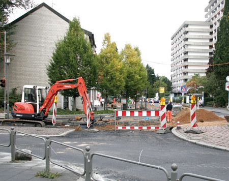 Wenn es momentan das berühmte „Nadelör“ im Brühler Straßenverkehr gibt, dann ist es die Baustelle im Kreisverkehr der Kölnstraße. Gerade in den Hauptverkehrszeiten bilden sich rund um den Kreisverkehr lange Autoschlangen mit sehr ungeduldigen Fahrern, die bei Grün heftig ins Gaspedal treten.