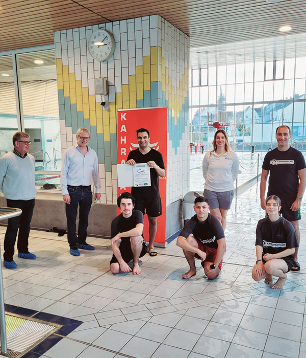 „Die Brühler Helden – KAHRAMANLAR e.V.” konnten sich kürzlich über eine weitere Auszeichnung freuen. Der Brühler Verein mit rund 1.100 Mitgliedern ist weiterhin eine offizielle zertifizierte Schwimmschule. Die Auszeichnung erhielten „Die Brühler Helden” erneut vom Nordrhein-Westfälischen Schwimmverband. Die Anerkennung, die vor zwei Jahren erfolgte, wurde am Wochenende erfolgreich auf überprüft, die Qualität stimmt nach wie vor. Die Übergabe erfolgte während des Trainingsbetriebes im Beisein von Bürgermeister Dieter Freytag, der Koordinatorin des Schwimmverbandes NRW, Sonja Reidenbach und dem Leiter des Karlsbads, Bernd Wüster.