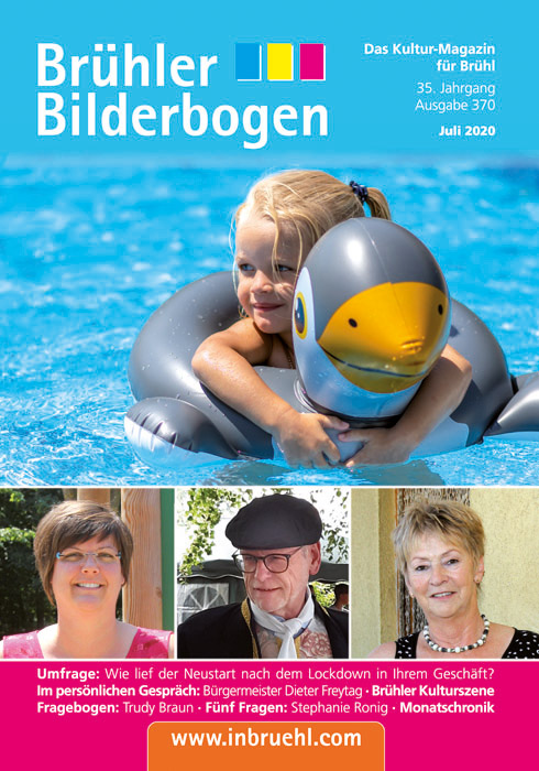 Auch wir als Redaktion müssen uns den neuen Gegebenheiten anpassen. Der Brühler Bilderbogen kann sich dabei glücklich schätzen, dass uns alle langjährigen Anzeigenkunden die Treue gehalten haben und wir unser Kulturmagazin jetzt wieder im Juli produzieren können. Und deshalb haben wir Ihnen diesmal auch unsere Umfrage gewidmet. Vielen, herzlichen Dank hierfür an dieser Stelle.