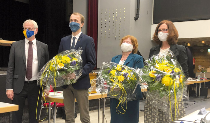 In der konstituierenden Sitzung des Brühler Stadtrates wurde Pia Regh (Bild ganz rechts) einstimmig zur ersten stellvertretenden, ehrenamtlichen Bürgermeisterin gewählt. Sie folgt damit auf Wolfgang Poschmann. Die 59-jährige Verwaltungsangestellte ist in Brühl geboren, verheiratet, Mutter von zwei Kindern und seit 2014 für die CDU im Rat der Stadt Brühl aktiv. Darüber hinaus ist sie ehrenamtlich bei der Brühler Chorvereinigung von 1846, der Schwadorfer Dorfgemeinschaft, den Brühler katholischen Kirchen und der Frauen Union engagiert. „Wir freuen uns, mit Pia Regh nun eine würdige Nachfolgerin gefunden zu haben. Sie wird diese Aufgabe hervorragend erfüllen“, sagt der Fraktionsvorsitzende Holger Köllejan.