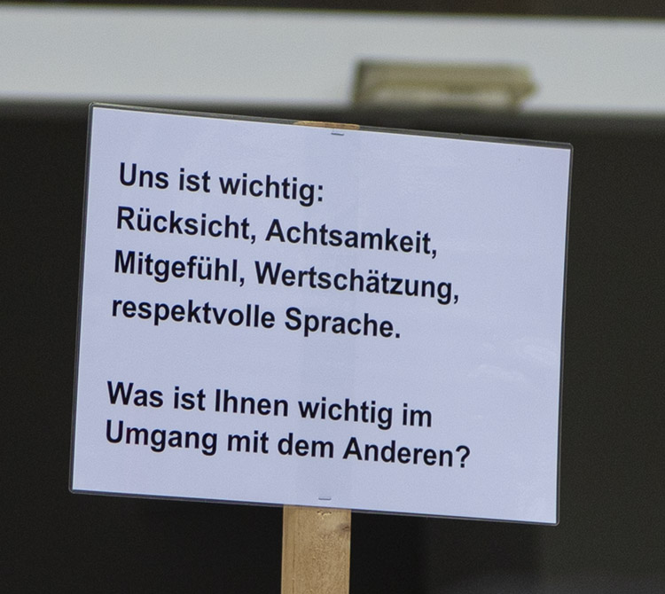Auf Plakaten werden Aussagen stehen, die zum Nachdenken oder zu Gesprächen anregen."