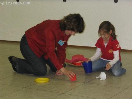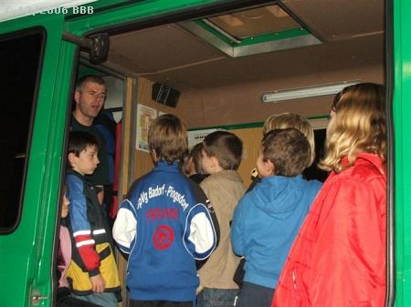 Zusammen mit der Bereitschaftspolizei (IAF) konnten die Kinder den Hühnerdieb fassen. Mit einer Kinderkette wurde der Wald durchkämmt und die beiden Hühner wohlbehalten und lebendig in ihrem Käfig gefunden. Im Marienhospital wurde erstmalig im Beisein von 10 Kindern ein Pferd geröntgt und in einem Pappmagen fanden sich bei einer Endoskopie viele, noch unverdaute, Gummibärchen. Flotte Samba-Rhythmen und viele Musikangebote waren ebenfalls heiß begehrt. Aber auch die Hundesprache wollten viele Kinder gerne kennen lernen. Schäferhund "Tarik" und sein Hundeerzieher gaben viel Auskunft über die Körpersprache und das Verhalten von Hunden und Wölfen.
