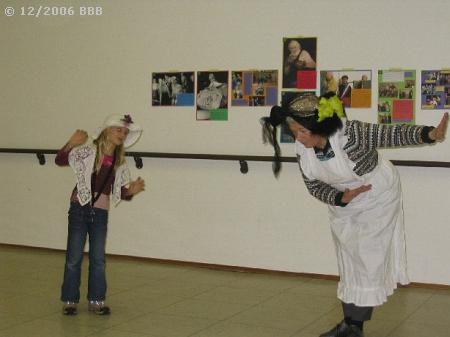 "Des Kaisers neue Kleider" ein Märchen als Schattentheater vom 3-T-Theater erfreute sich bei den Kindern großer Beliebtheit. Aber auch auf die Frage: " Wie macht man eigentlich Kino?" wollten die Kinder eine Antwort. Beim "generationsübergreifenden Theaterspielen" von 7 bis 85 Jahren ging es dann im Seniorenwohnheim Wetterstein ans Proben. Im Gymnastikraum trafen sich sechs Kinder mit fünf Mitgliedern des Brühler Theaterteams. Nach Sprechübungen und Zungenbrechern ging es ans Spielen. Viele kleine Sketche und Alltagssituationen wurden pantomimisch dargestellt und vom Publikum erraten. Natürlich waren auch Masken und andere Verkleidungsutensilien im Gebrauch. Übereinstimmend wollten alle Spieler - die Jungen und die Älteren die gemeinsame Probenarbeit im Frühjahr fortsetzen.