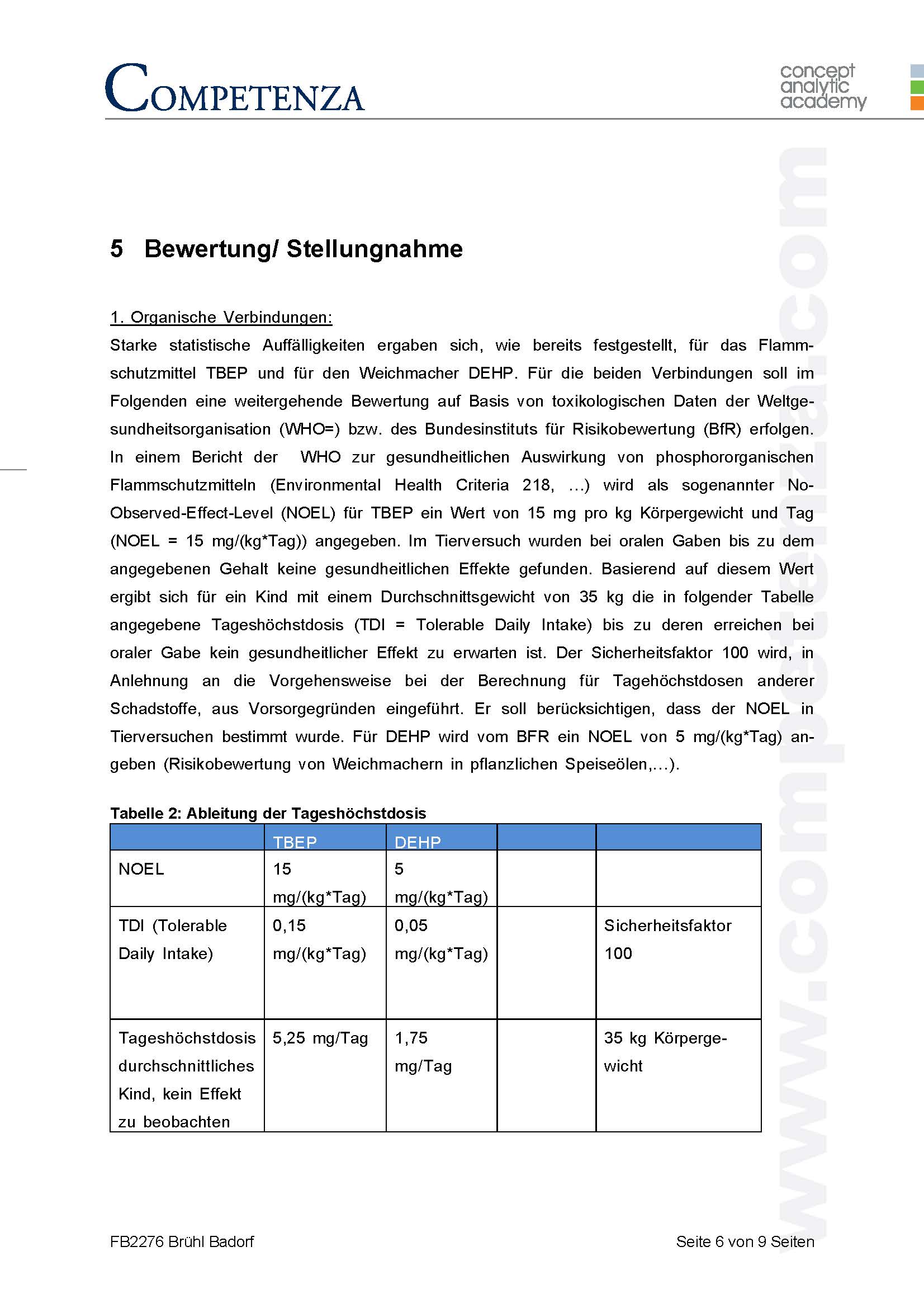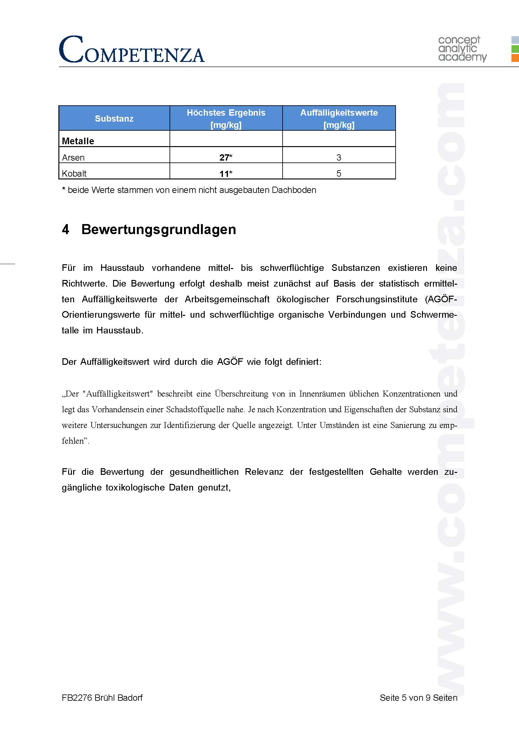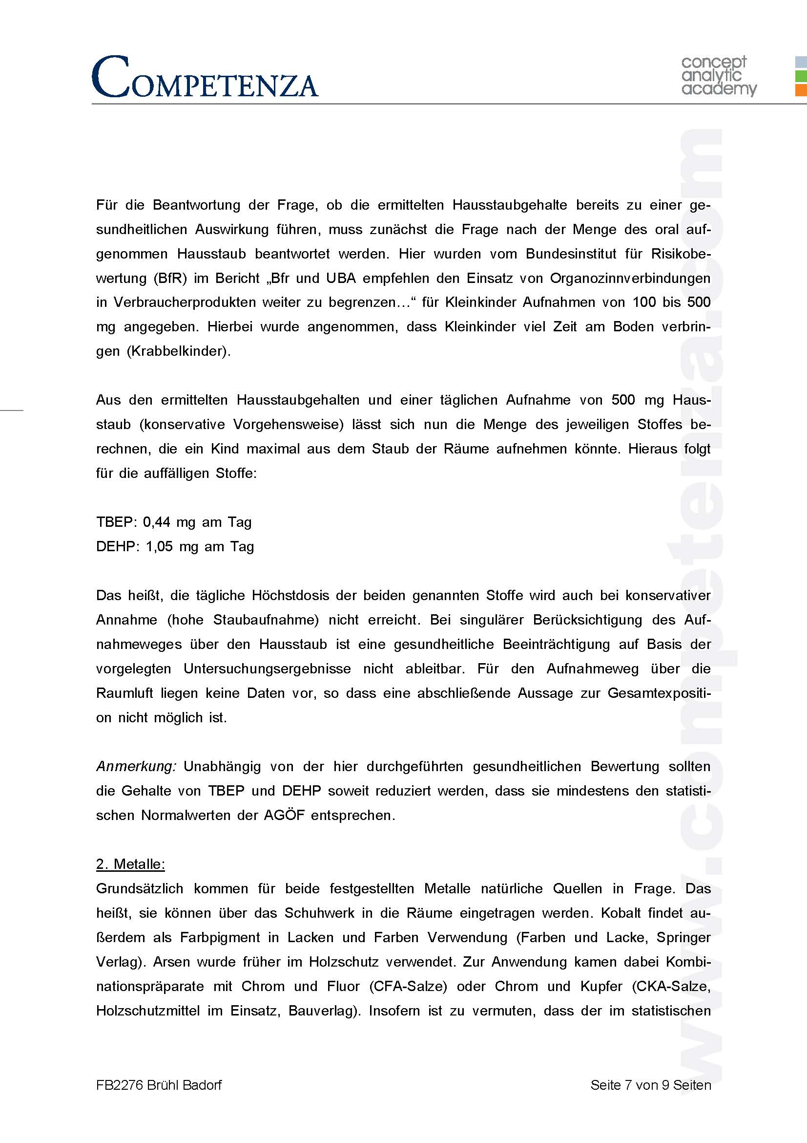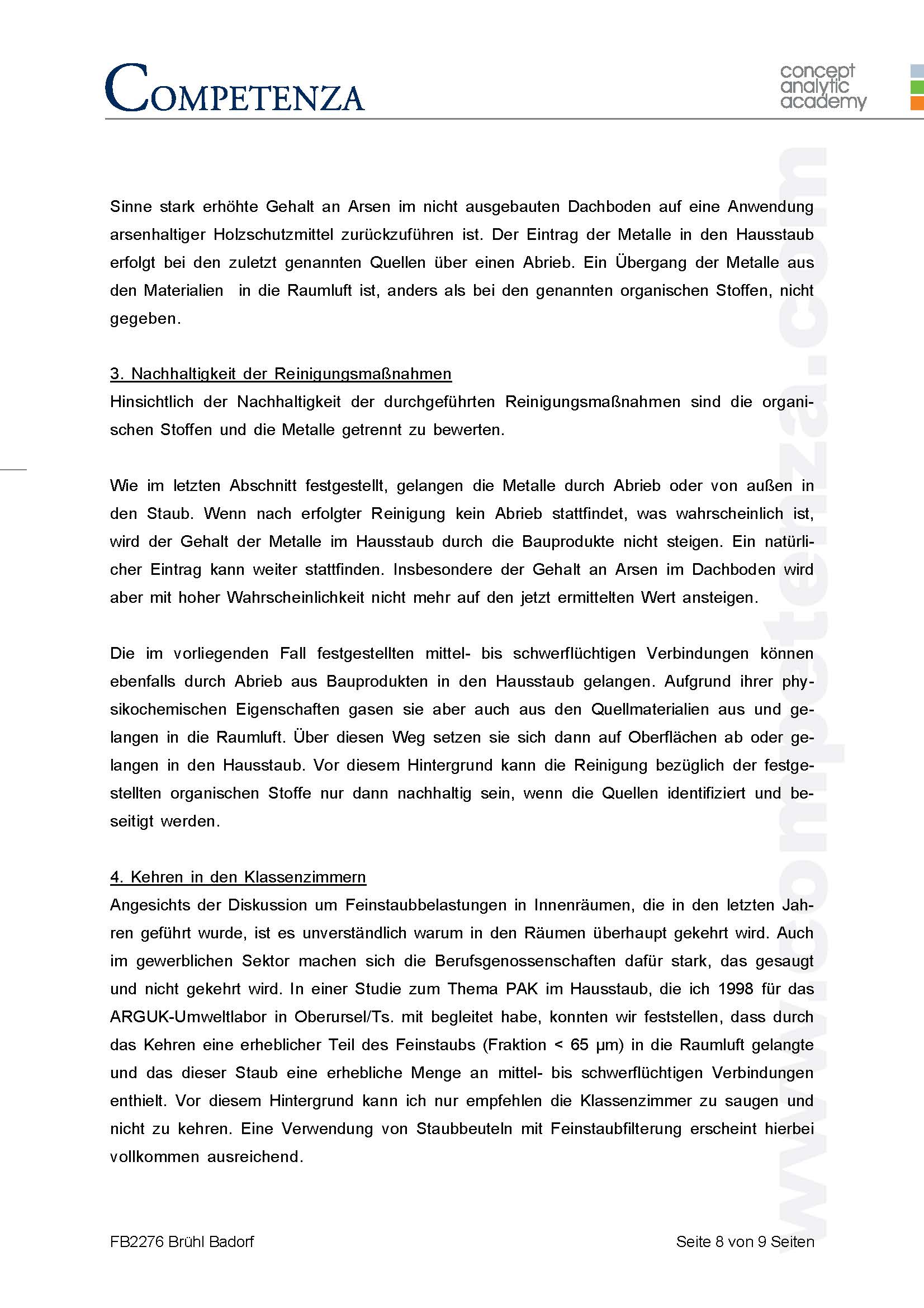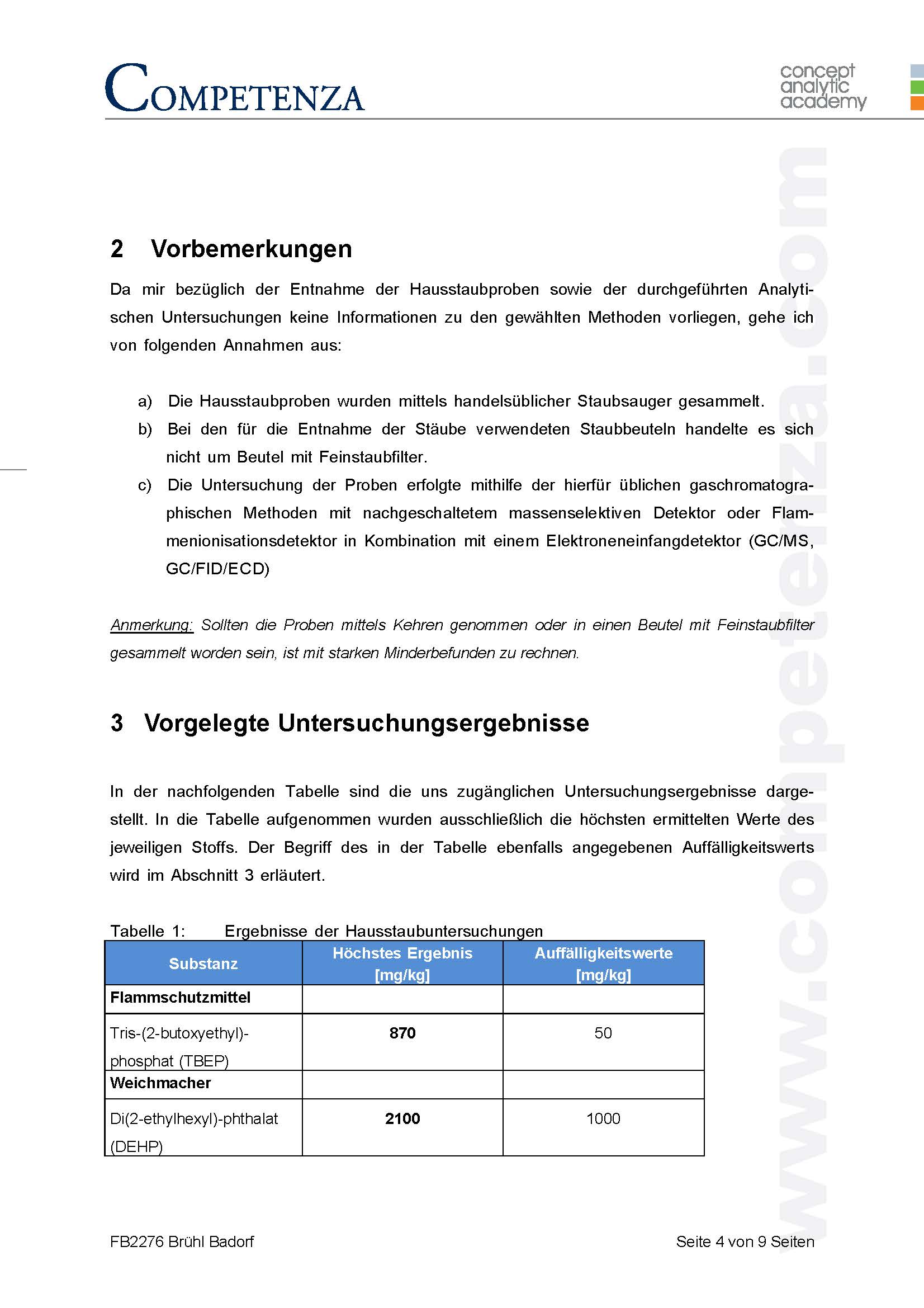 Externe Stellungnahme zur Untersuchung des Hausstaubes